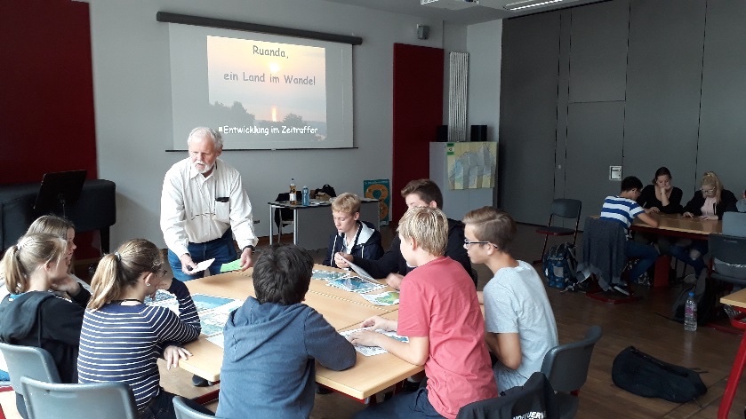 Vorbereitet und begleitet waren beide Besuche im Rahmen einer kontinuierlichen AG – Arbeit in Zusammenarbeit mit renommierten externen Dozentinnen und Dozenten verschiedenster Organisationen (mit Hilfe der Initiative Bildung trifft Entwicklung), einem engen Kontakt zu der Gruppe ruandischer Studenten an der TU Kaiserslautern und insbesondere dem ehemaligen Leiter des Kontaktbüros in Kigali, Herrn Fischer. Alle Besuche sind auf unserer Schulhomepage dokumentiert und verlinkt.