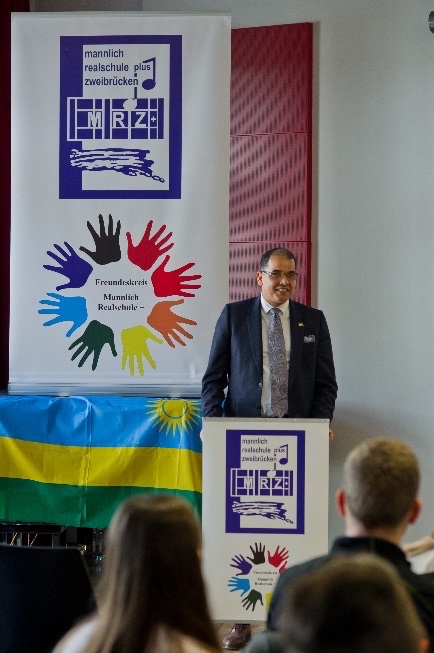 Beim Begegnungsfest der Kulturen in Zweibrücken vor zwei Jahren war unsere Schülergruppe mit einem Stand präsent – dies ist auch für die diesjährige Veranstaltung am 11.05.2018 geplant. Das Partnerschaftsprojekt hat bei allen öffentlichen Schulveranstaltungen, wie z. Bsp. Konzerten, Weihnachtsbasar und Tag der offenen Tür einen exponierten Platz und wird auch von der örtliche Presse in besonderer Weise begleitet. So hat die Rheinpfalz nach der ersten Reise einen Fotowettbewerb organisiert und im Rahmen des Besuchs aus Ruanda hat die Stadt Zweibrücken in Zusammenarbeit mit unserer Schule eine Stadtrally auf Englisch konzipiert, was auch von der Presse begleitet war. Das ganze Projekt erfolgt in engster Zusammenarbeit mit dem Ruandareferat im Innenministerium und wird von der ganzen Schulgemeinschaft getragen. Vor allem Herr Meier, seit 2012 Schulleiter der MRZ+, hat von Beginn an alle „Ruanda-Aktivitäten“ weitergeführt und befürwortet. Ebenso hat er durch die Unterstützung der Initiative von Cornelia Müller, Peter Hoffmann und Herrn Priester in Form von ausführlichen Besprechungen in allen schulischen Gremien an dem letztlich entscheidenden Gesamtkonferenzbeschluss für die Intensivierung des Kontaktes zur Partnerschule maßgeblich mitgewirkt und freut sich, dass an seiner/unserer Schule nun ein solches nicht alltägliches Angebot gemacht werden kann und hofft u.a. auf die Unterstützung der regionalen Unternehmen.